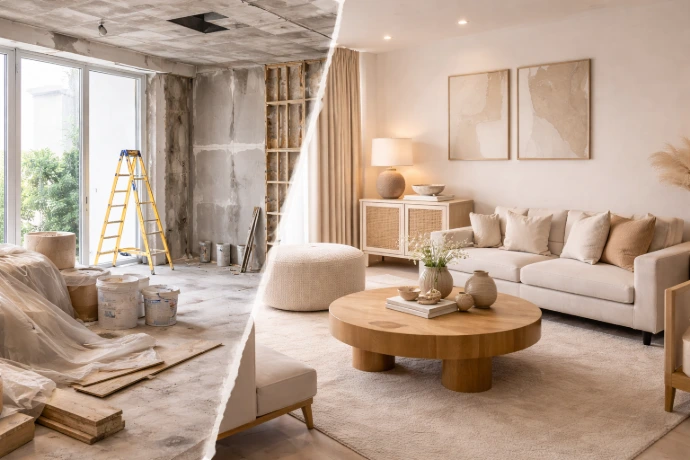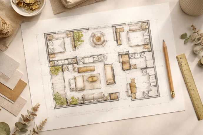 Full interior design for homes, villas, and apartments — from layout planning to final styling and furnishing.